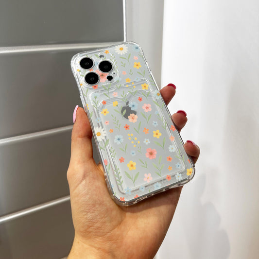 Wild Flower Floral Card Holder Phone Case for iPhone 17 16 15 14 13 12 11 11 Pro Max Mini 7 8 XR XS X Wallet Shockproof Phone Cover Name
