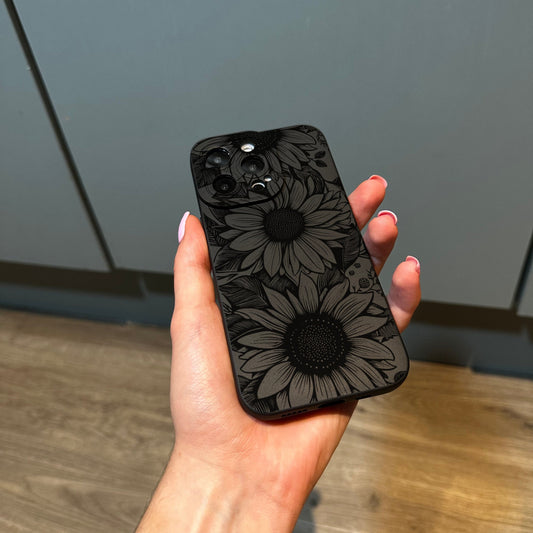 Black Sunflower Floral Print Phone Case for iPhone 17 16 15 14 13 12 11 11 Pro Max Mini 7 8 XR X Shockproof Phone Cover with Customised Name