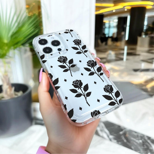 Black Rose Pattern Clear Phone Case for iPhone 17 16 15 14 13 12 11 11 Pro Max Mini 7 8 XR XS X Shockproof Cover with Custom Name
