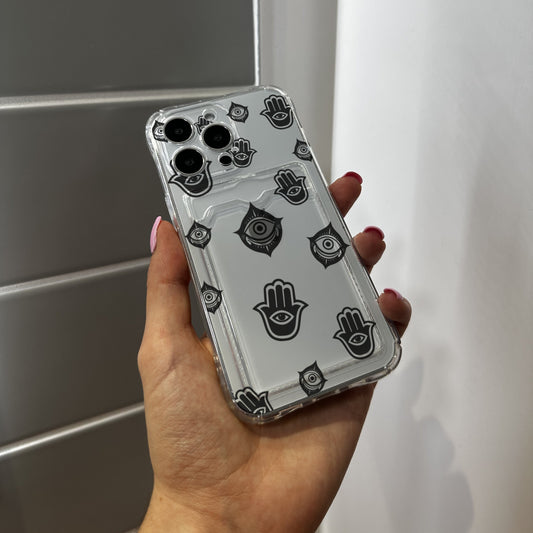Evil Eye Protection Card Holder Phone Case for iPhone 17 15 15 14 13 12 11 11 Pro Max Mini 7 8 XR XS X Shockproof Phone Cover Custom Name