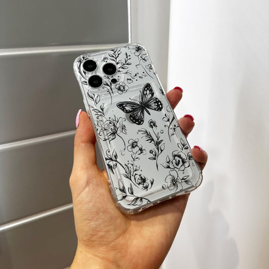 Floral Butterfly Cute Card Holder Phone Case for iPhone 17 16 15 14 13 12 11 11 Pro Max Mini Wallet Shockproof Phone Cover with Custom Name