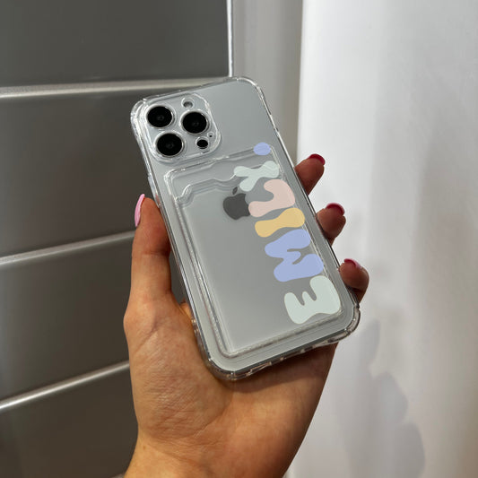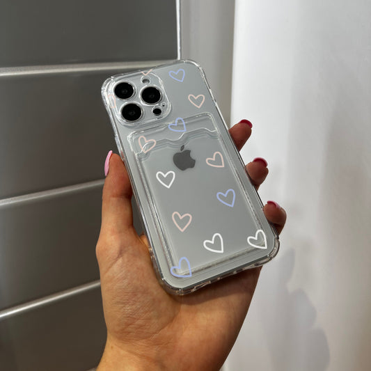 Pastel Heart Clear Card Holder Phone Case for iPhone 17 16 15 14 13 12 11 11 Pro Max Mini 7 8 XR X Shockproof Phone Cover with Custom Name