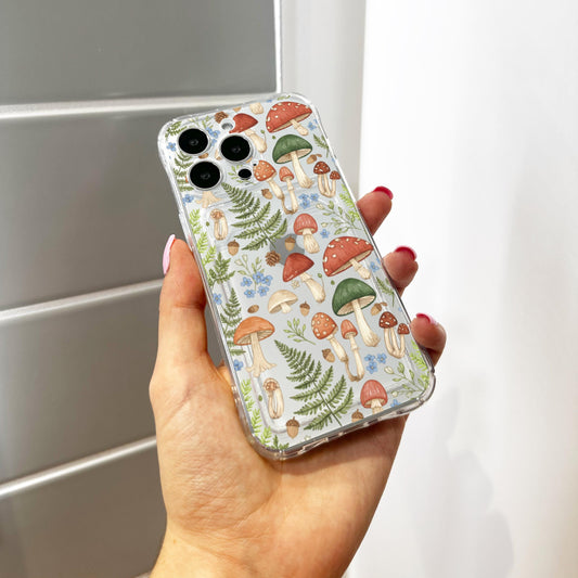 Red Mushroom Clear Phone Case for iPhone 17 16 15 14 13 12 11 11 Pro Max Mini 7 8 XR XS X Shockproof Silicone Phone Cover Custom Name