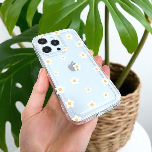 Floral Flower Daisy Clear Phone Case for iPhone 17 16 15 14 13 12 11 11 Pro Max Mini 7 8 XR XS X Shockproof Silicone Phone Cover Custom Name