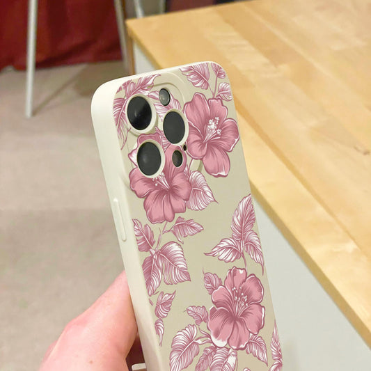 Pink Aloha Flower Floral Beige Phone Case for iPhone 17 16 15 14 13 12 11 11 Pro Max Mini 7 8 SE XR XS X Shockproof Phone Cover Custom Name