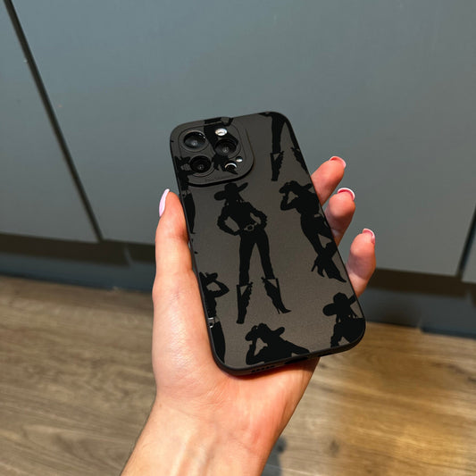 Cowgirl Western Black Phone Case for iPhone 15 14 13 12 11 11 Pro Max Mini 7 8 XR XS X Shockproof Cover With Personalised Name