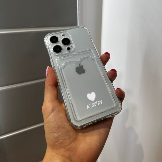Heart Card Holder Phone Case for iPhone 15 14 13 12 11 11 Pro Max Mini 7 8 XR XS X Wallet Shockproof Phone Cover with Customised Name