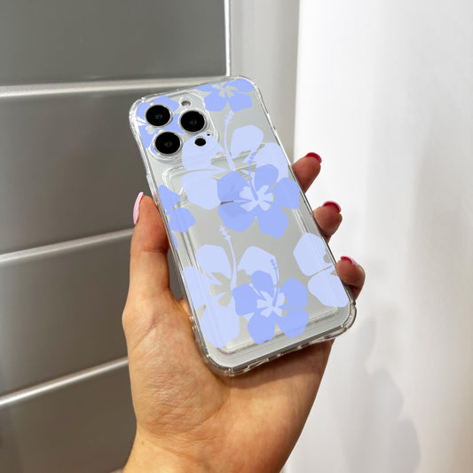 Blue Hawaiian Aloha Flowers Card Holder Phone Case for iPhone 17 16 15 14 13 12 11 11 Pro Max Mini Wallet Shockproof Phone Cover Custom Name