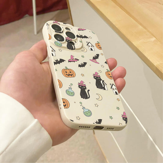 Halloween Bat Pumpkin Cat Beige Phone Case for iPhone 17 16 15 14 13 12 11 11 Pro Max Mini 7 8 XR XS X Shockproof Phone Cover Custom Name