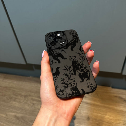 Black Panda Bamboo Print Phone Case for iPhone 15 14 13 12 11 11 Pro Max Mini 7 8 XR XS X Shockproof Phone Cover with Customised Name