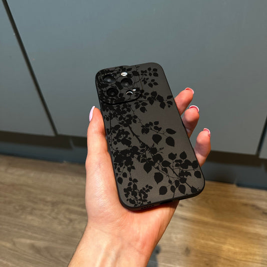 Black Tree Leaves Print Phone Case for iPhone 17 16 15 14 13 12 11 11 Pro Max Mini 7 8 XR XS X Shockproof Phone Cover with Customised Name