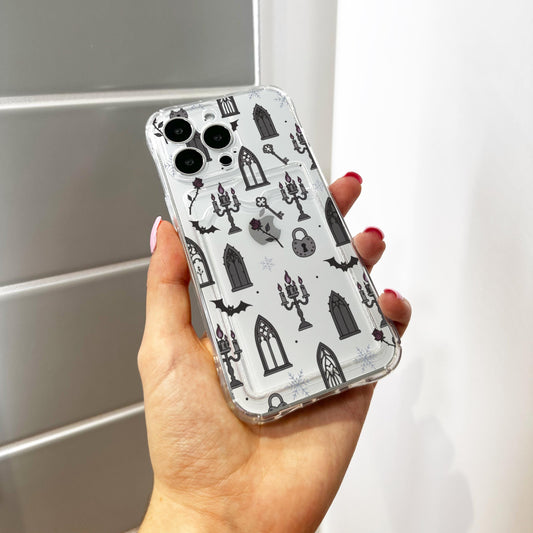 Gothic Halloween Card Holder Phone Case for iPhone 17 16 15 14 13 12 11 11 Pro Max Mini 7 8 XR X Wallet Shockproof Phone Cover Custom Name