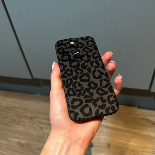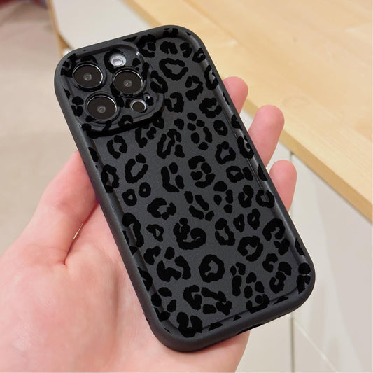 Leopard Print Black Thick Phone Case for iPhone 15 14 13 12 11 11 Pro Max Mini 7 8 XR XS X Shockproof Phone Cover with Customised Name