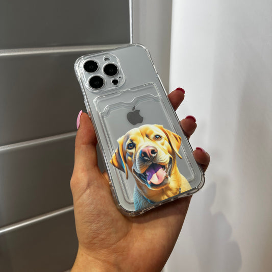 Labrador Dog Card Holder Phone Case for iPhone 15 14 13 12 11 11 Pro Max Mini 7 8 XR XS X Wallet Shockproof Phone Cover with Customised Name