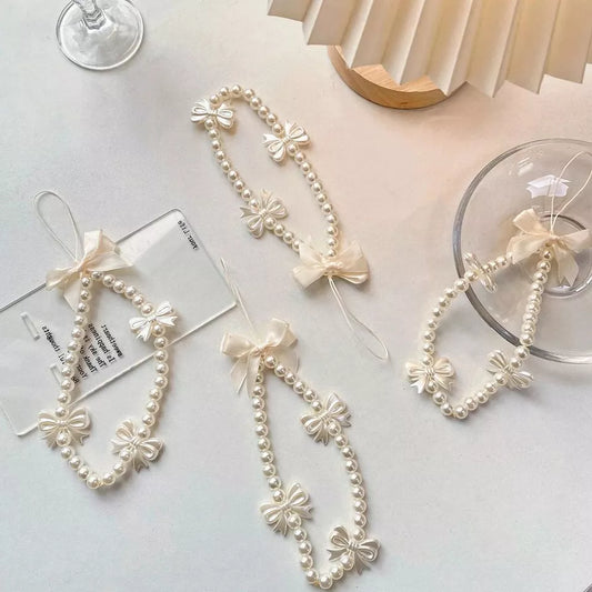 Pearl Bow Mobile Phone Strap Charm Wrist Hand Lanyard Phone Charm Hand Strap