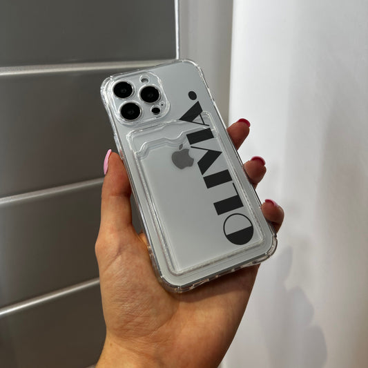Personalised Name Clear Card Holder Phone Case for iPhone 15 14 13 12 11 11 Pro Max Mini 7 8 XR XS X Shockproof Phone Cover