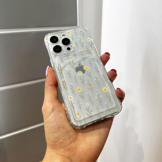 Wild Flower Pattern Floral Clear Card Holder Phone Case for iPhone 17 16 15 14 13 12 11 11 Pro Max Mini 7 Wallet Shockproof Phone Cover