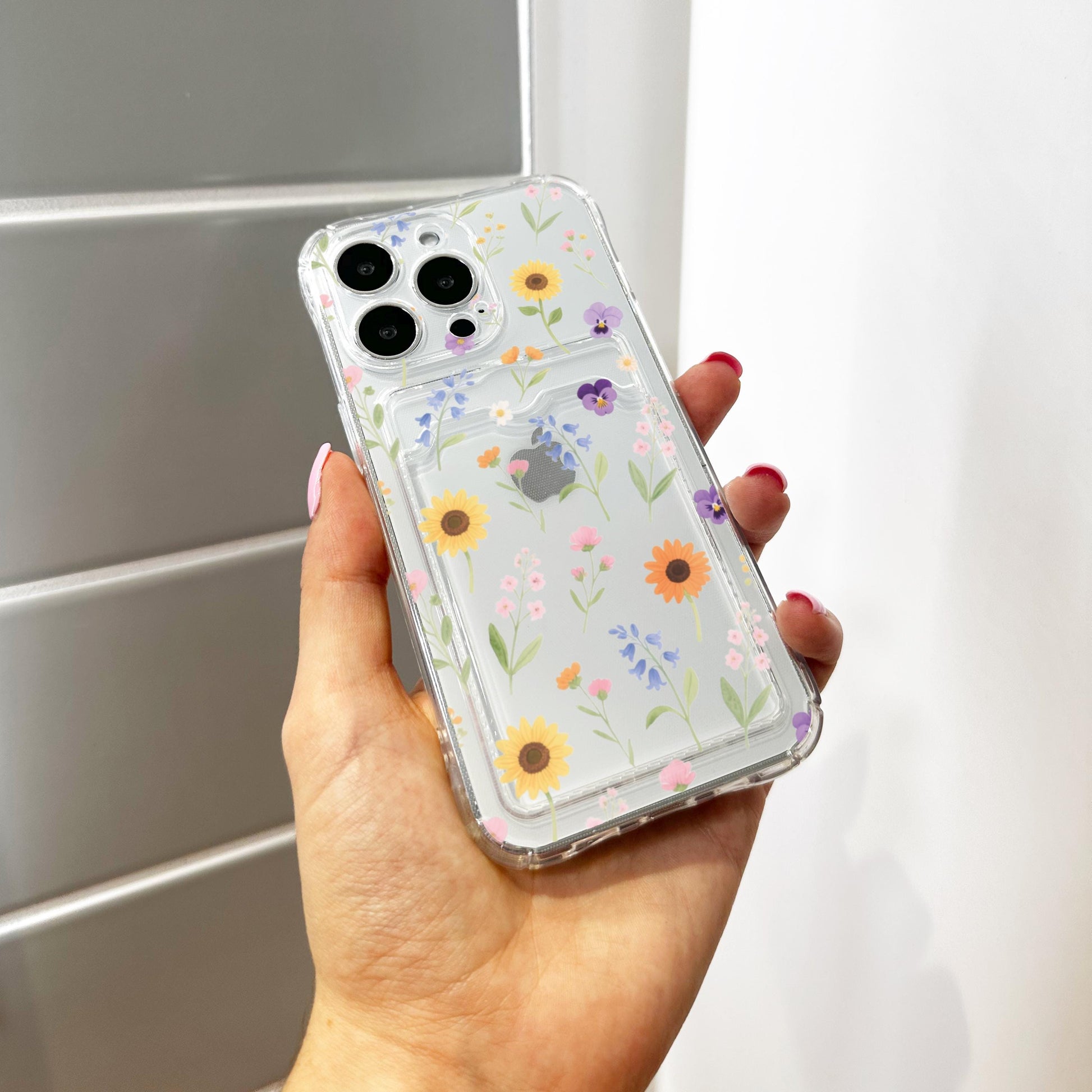Aesthetic Sunflowers Wild Flower Card Holder Phone Case for iPhone 17 16 15 14 13 12 11 11 Pro Max Mini 7 8 Wallet Shockproof Phone Cover
