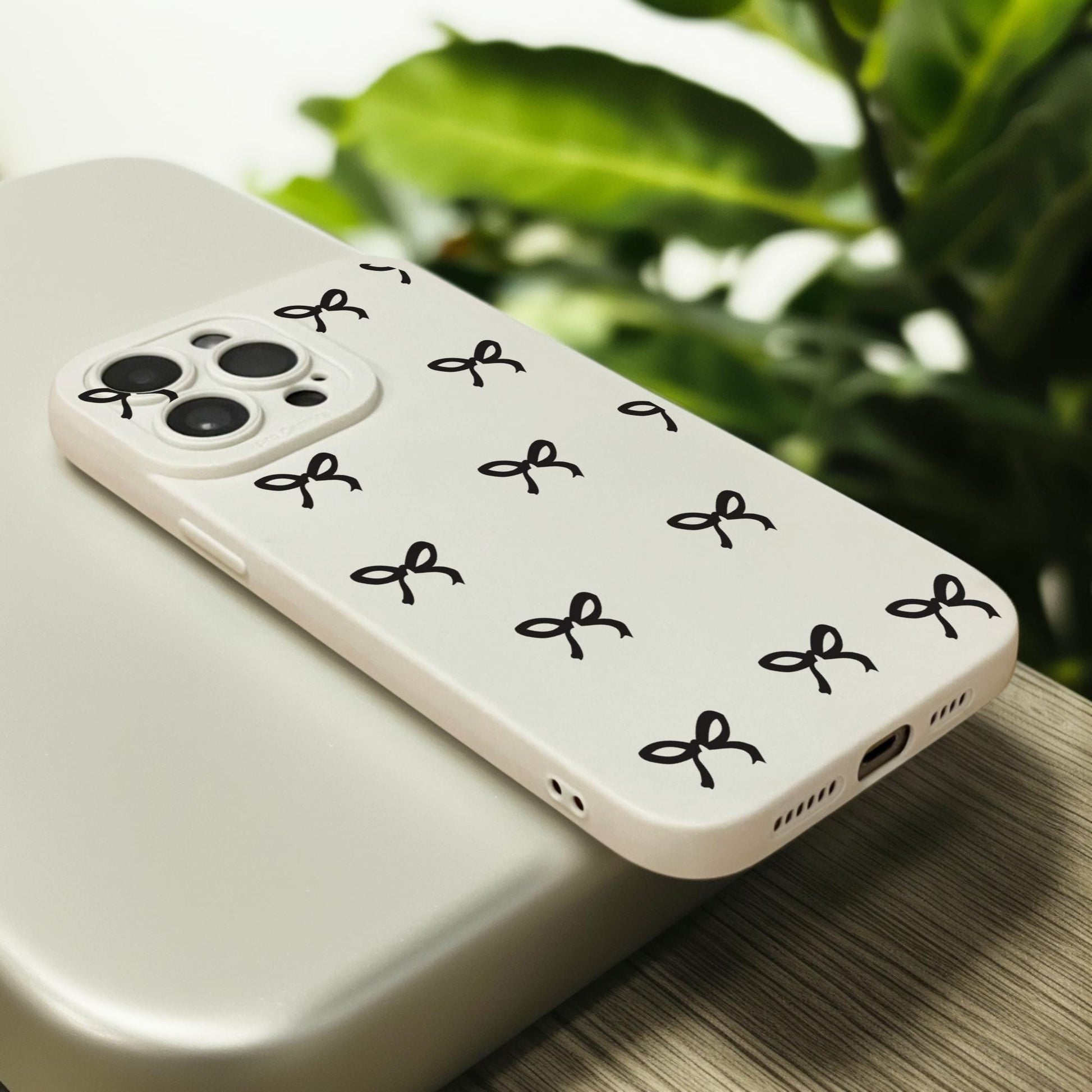 Black Bow Pattern Beige Phone Case for iPhone 17 16 15 14 13 12 11 11 Pro Max Mini 7 8 XR XS X Shockproof Phone Cover with Personalised Name