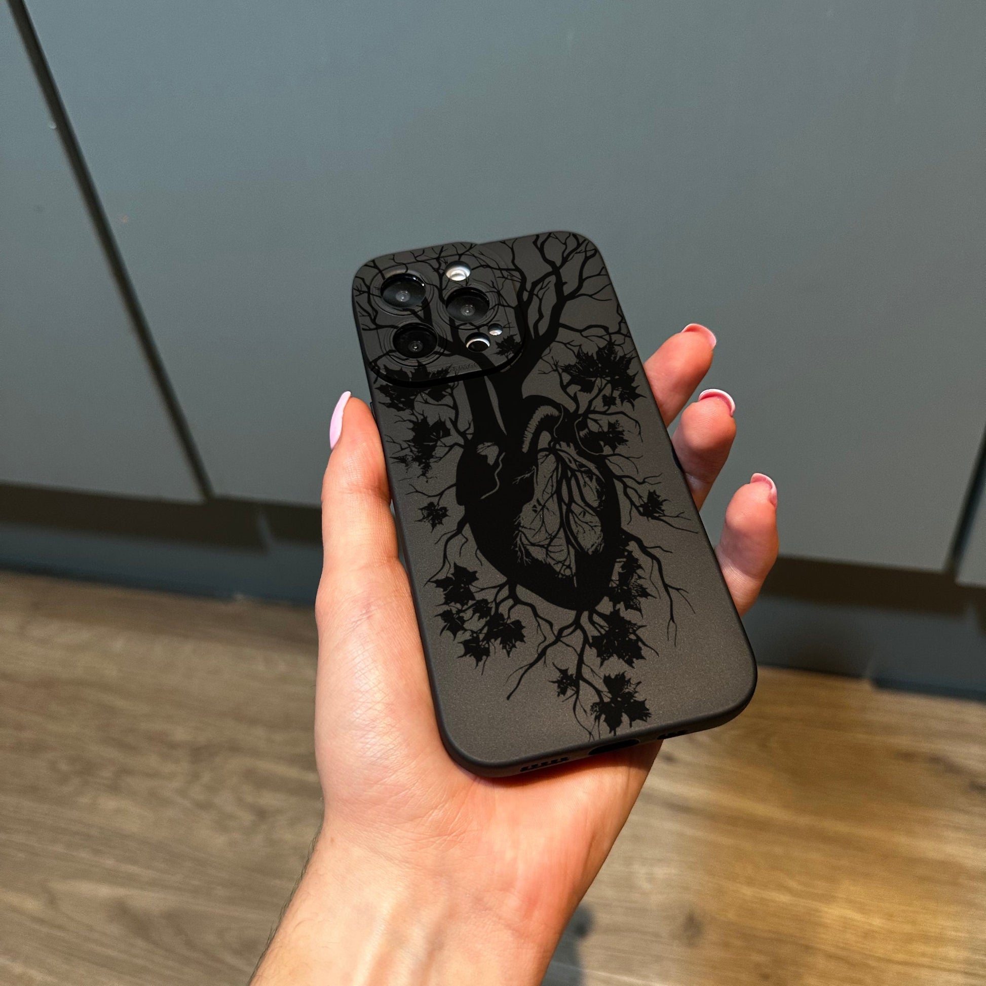 Black Heart Organ Print Phone Case for iPhone 17 16 15 14 13 12 11 11 Pro Max Mini 7 8 XR XS X Shockproof Phone Cover with Customised Name