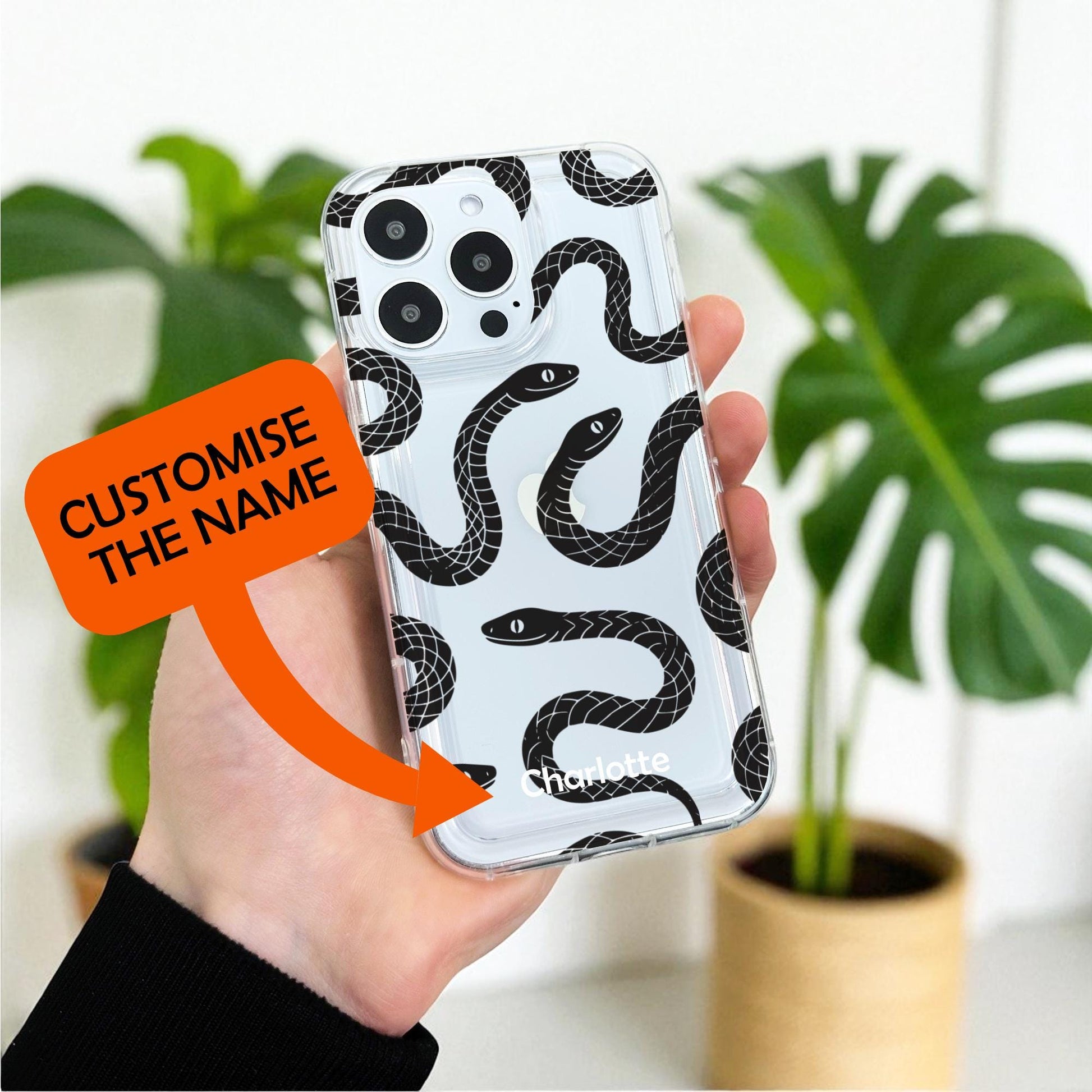 Black Snakes Tattoo Style Clear Phone Case for iPhone 17 16 15 14 13 12 11 11 Pro Max Mini 7 8 XR X Shockproof Slim Phone Cover Custom Name