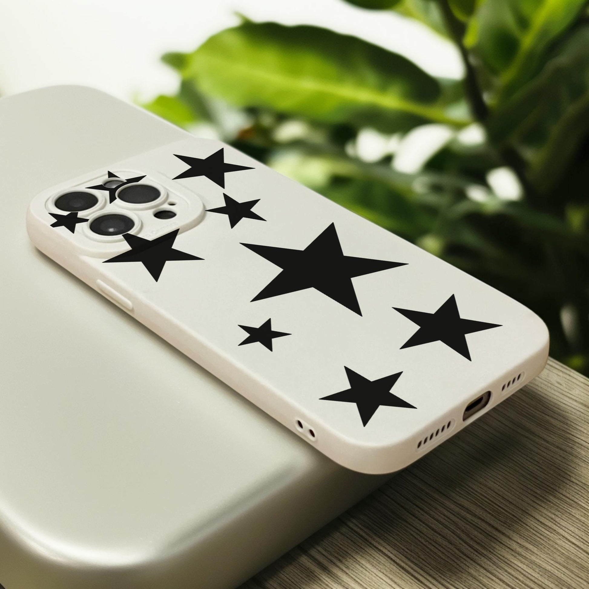 Black Star Pattern Phone Case for iPhone 17 16 15 14 13 12 11 11 Pro Max Mini 7 8 XR XS X Shockproof Phone Cover with Personalised Name