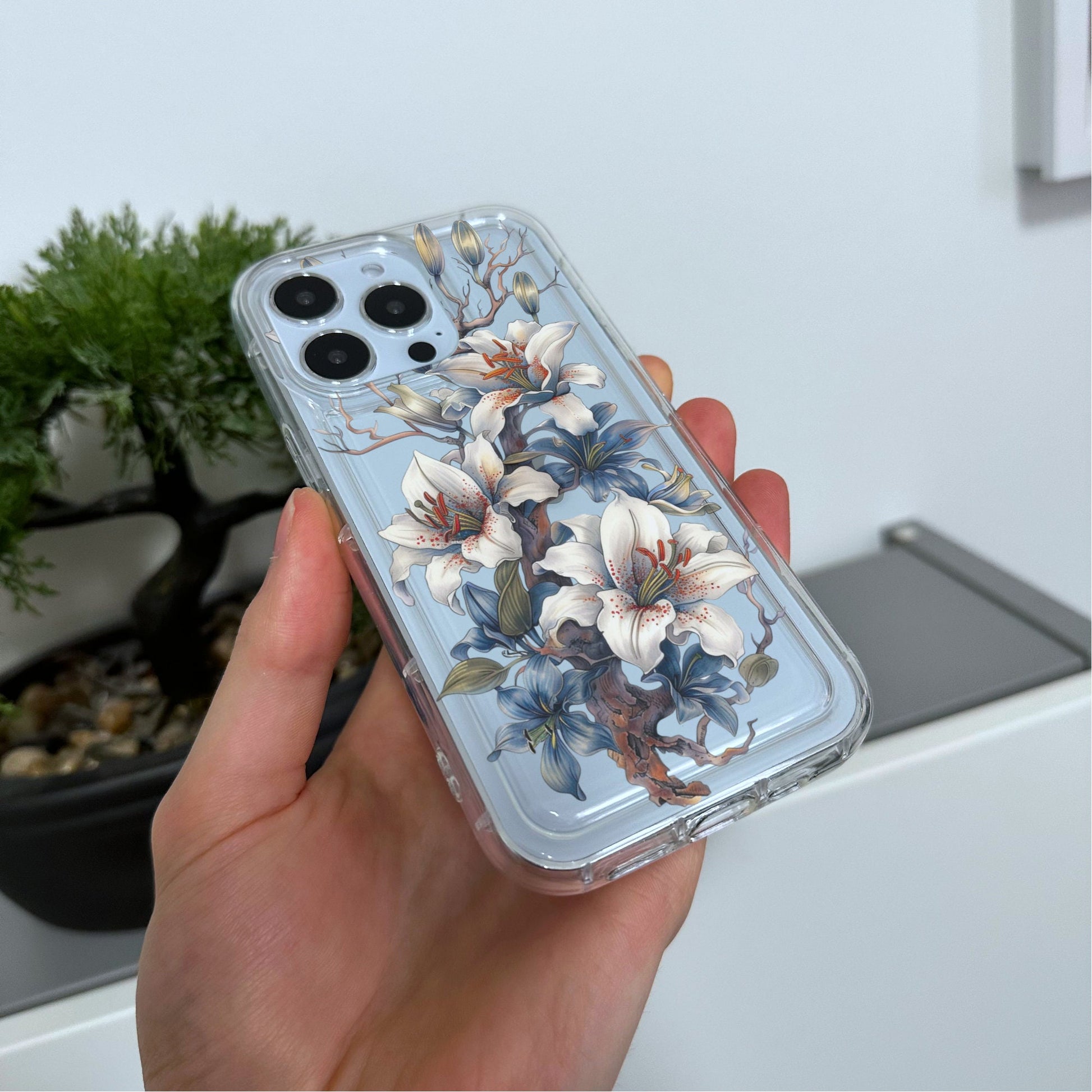 Botanical Flower Print Clear Phone Case for iPhone 15 14 13 12 11 11 Pro Max Mini 7 8 XR XS Shockproof Silicone Phone Cover with Custom Name