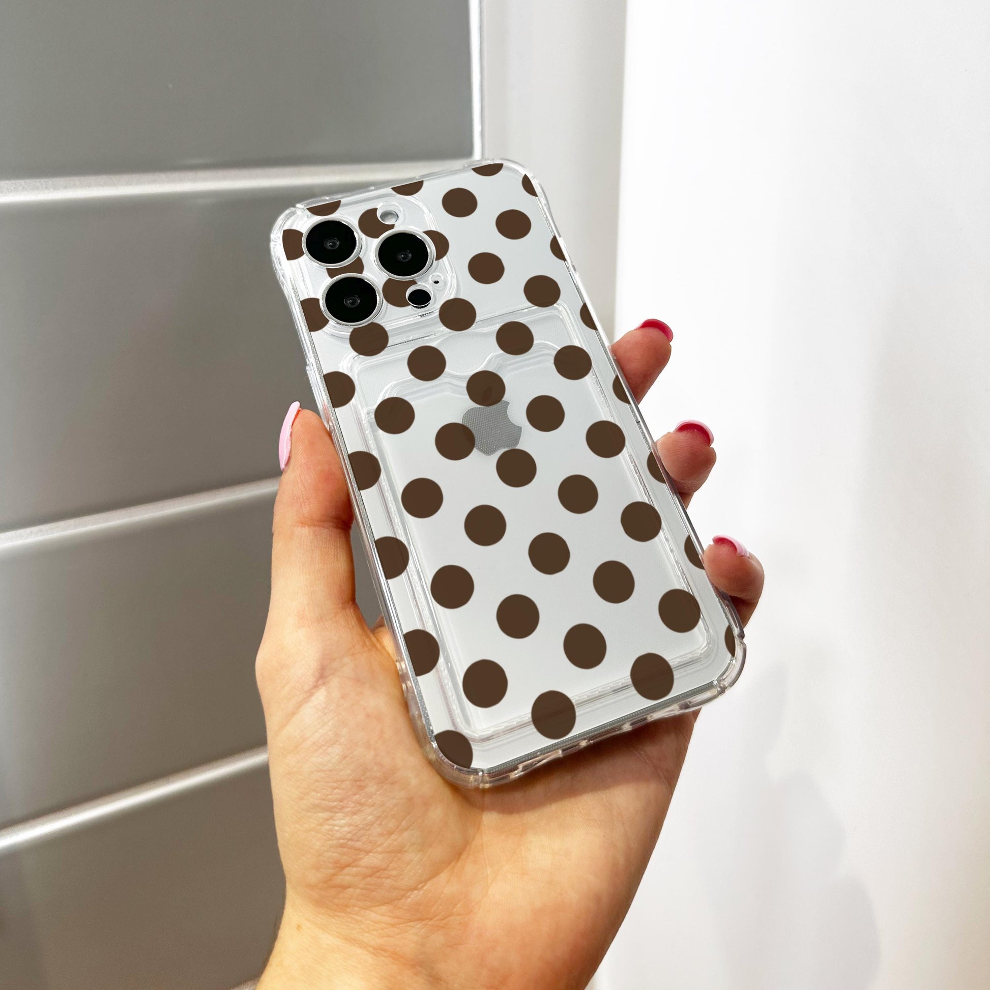 Brown Polka Dot Card Holder Phone Case for iPhone 17 16 15 14 13 12 11 11 Pro Max Mini 7 8 XR XS X Wallet Shockproof Phone Cover Custom Name