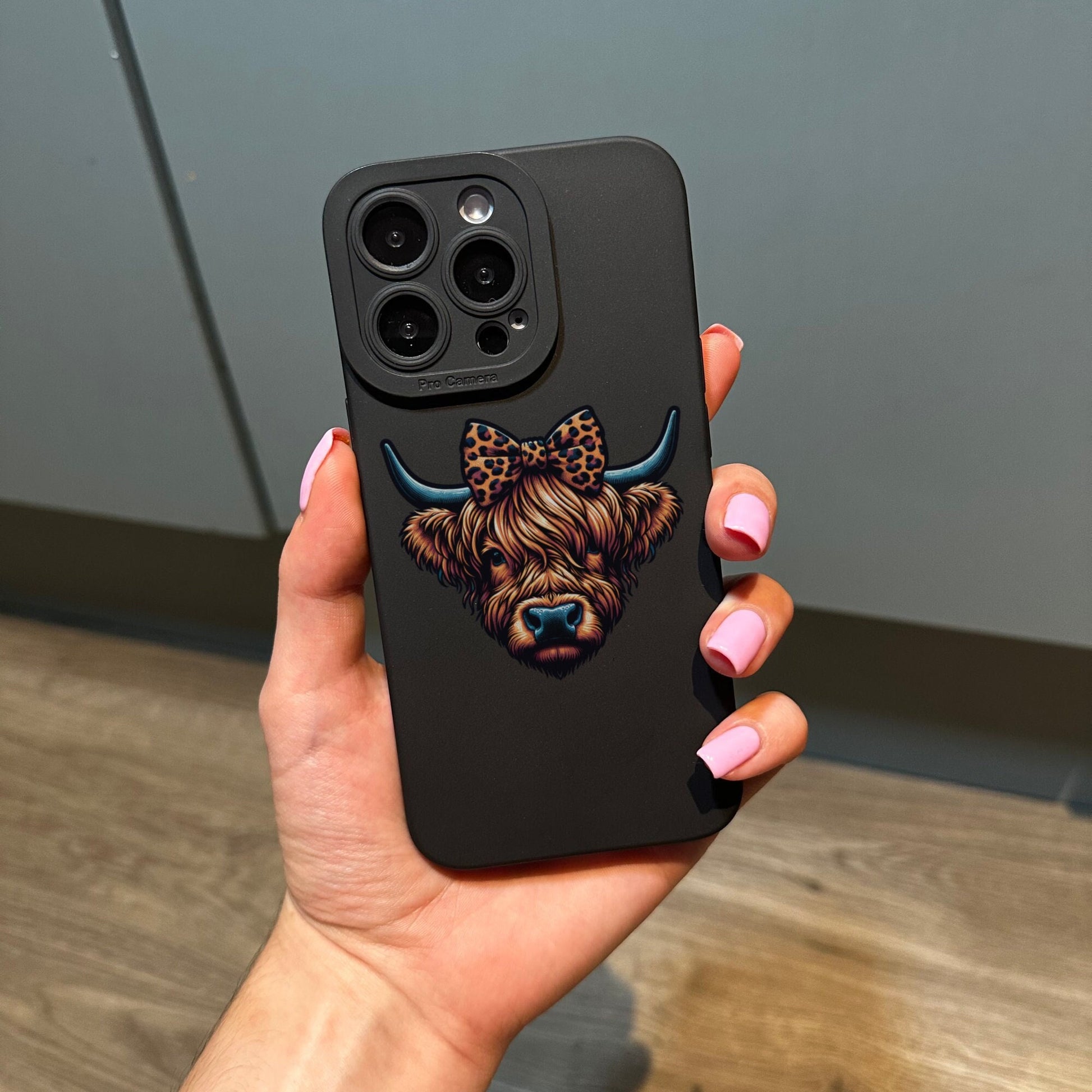 Cartoon Cow Black Phone Case for iPhone 17 16 15 14 13 12 11 11 Pro Max Mini 7 8 XR XS X Shockproof Phone Cover Customised Name and Animal