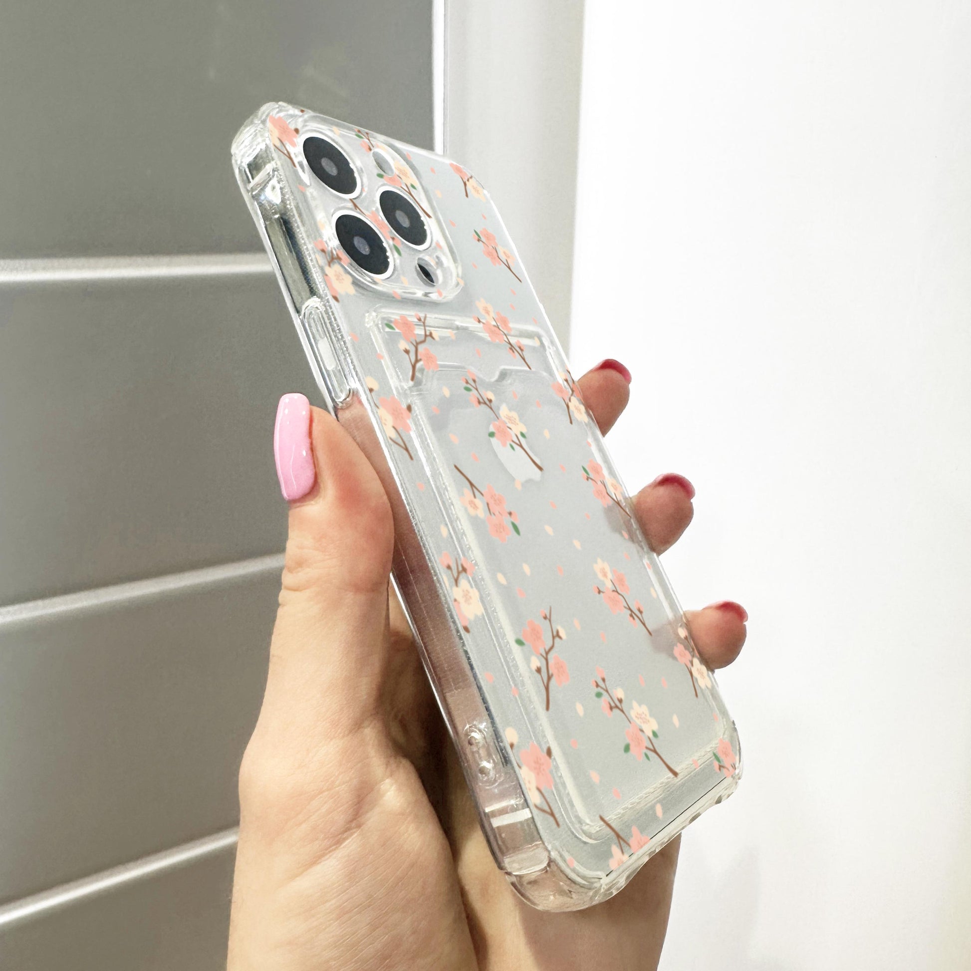 Cherry Blossom Card Holder Phone Case for iPhone 17 16 15 14 13 12 11 11 Pro Max Mini 7 8 XR XS X Wallet Shockproof Phone Cover Custom Name