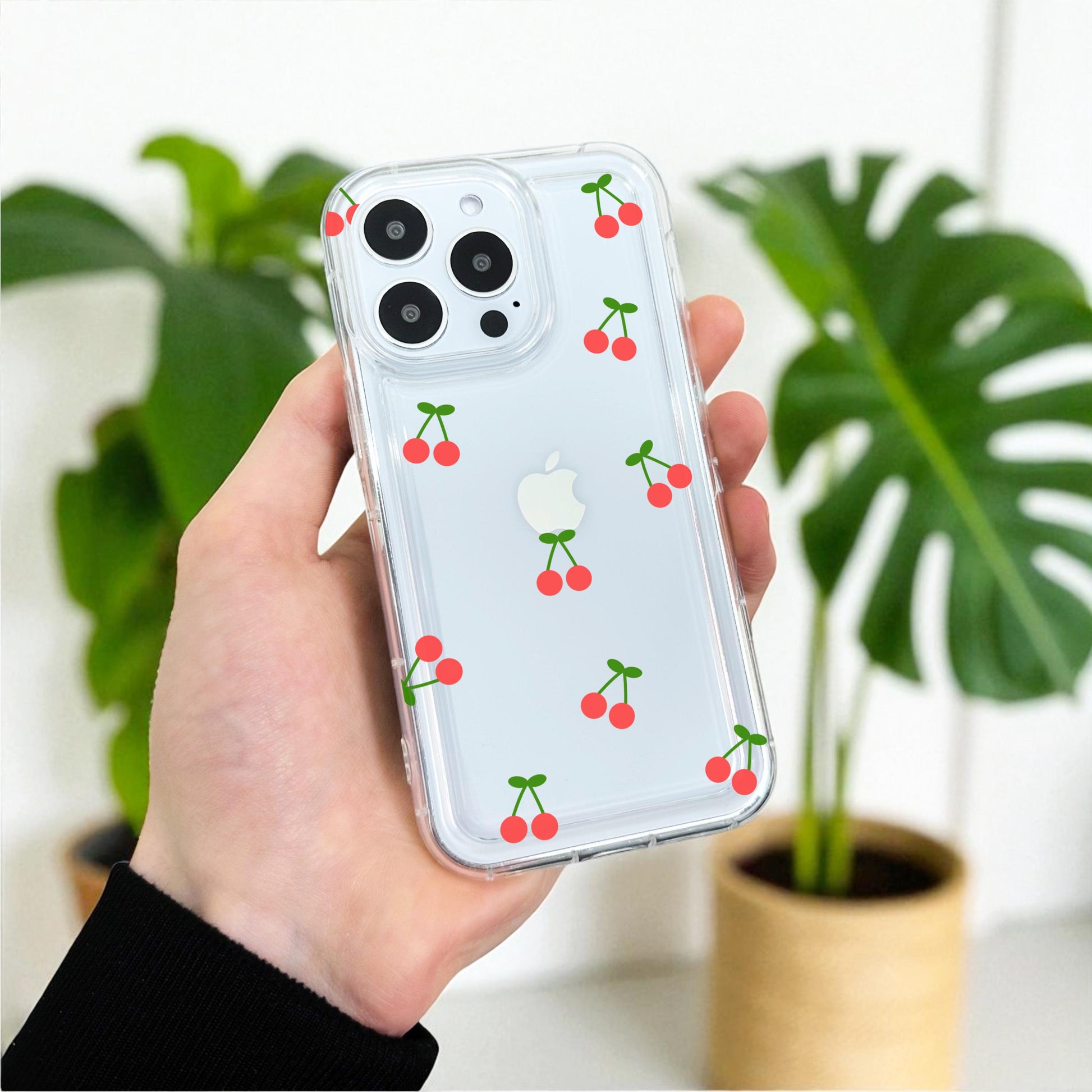 Cherry Pattern Clear Phone Case for iPhone 17 16 15 14 13 12 11 11 Pro Max Mini 7 8 XR XS X Shockproof Silicone Phone Cover with Custom Name
