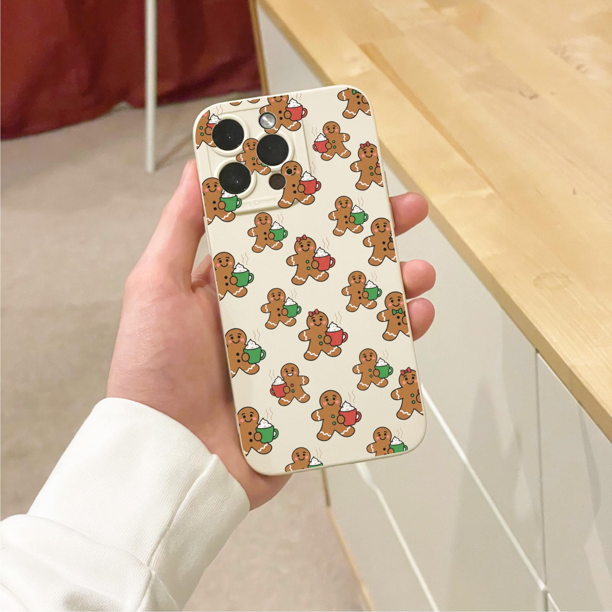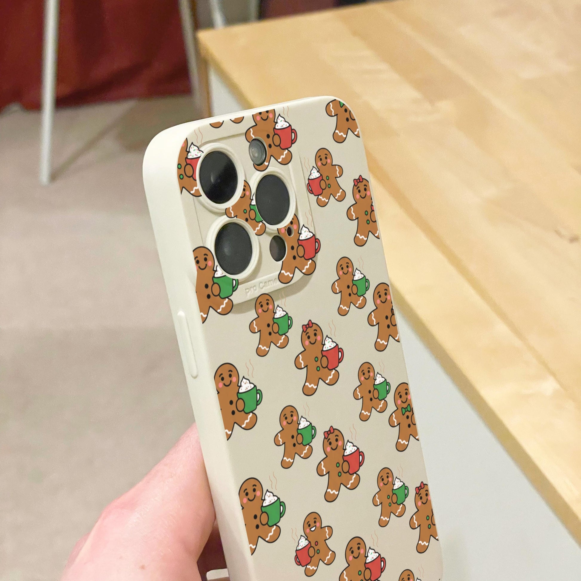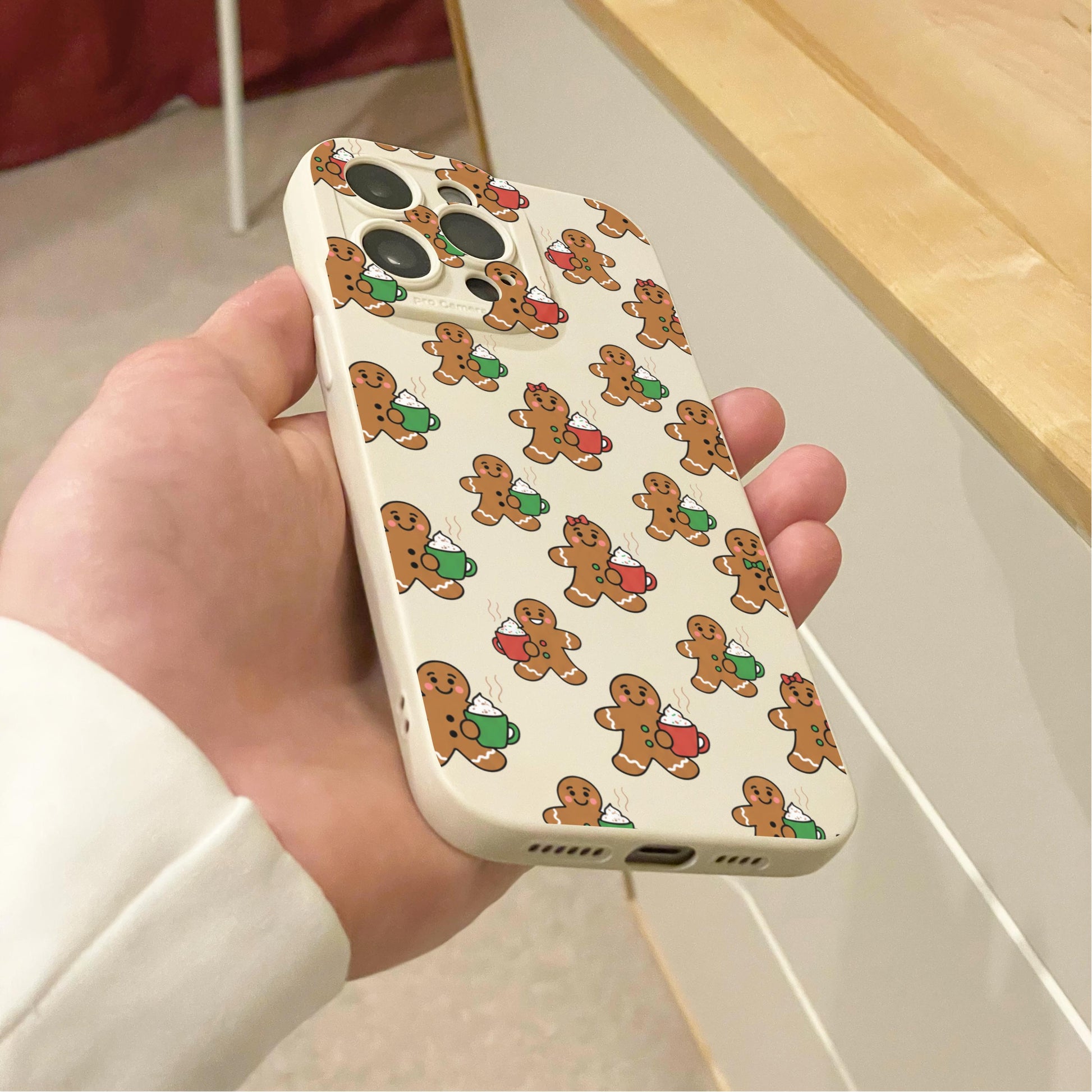 Christmas Gingerbread Man Beige Phone Case for iPhone 17 16 15 14 13 12 11 11 Pro Max Mini 7 8 XR X Shockproof Phone Cover with Custom Name