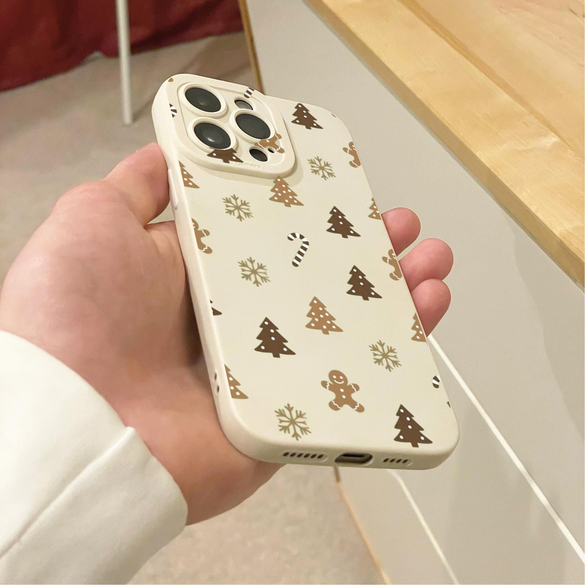 Christmas Tree Gingerbread Man Snowflake Beige Phone Case for iPhone 17 16 15 14 13 12 11 11 Pro Max Mini 7 8 SE XR X Shockproof Phone Cover