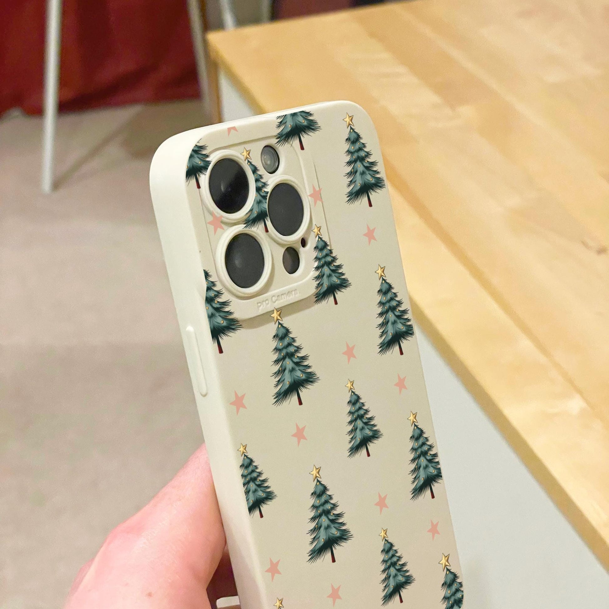 Christmas Tree Star Pattern Beige Phone Case for iPhone 16 15 14 13 12 11 11 Pro Max Mini XR XS X Shockproof Phone Cover