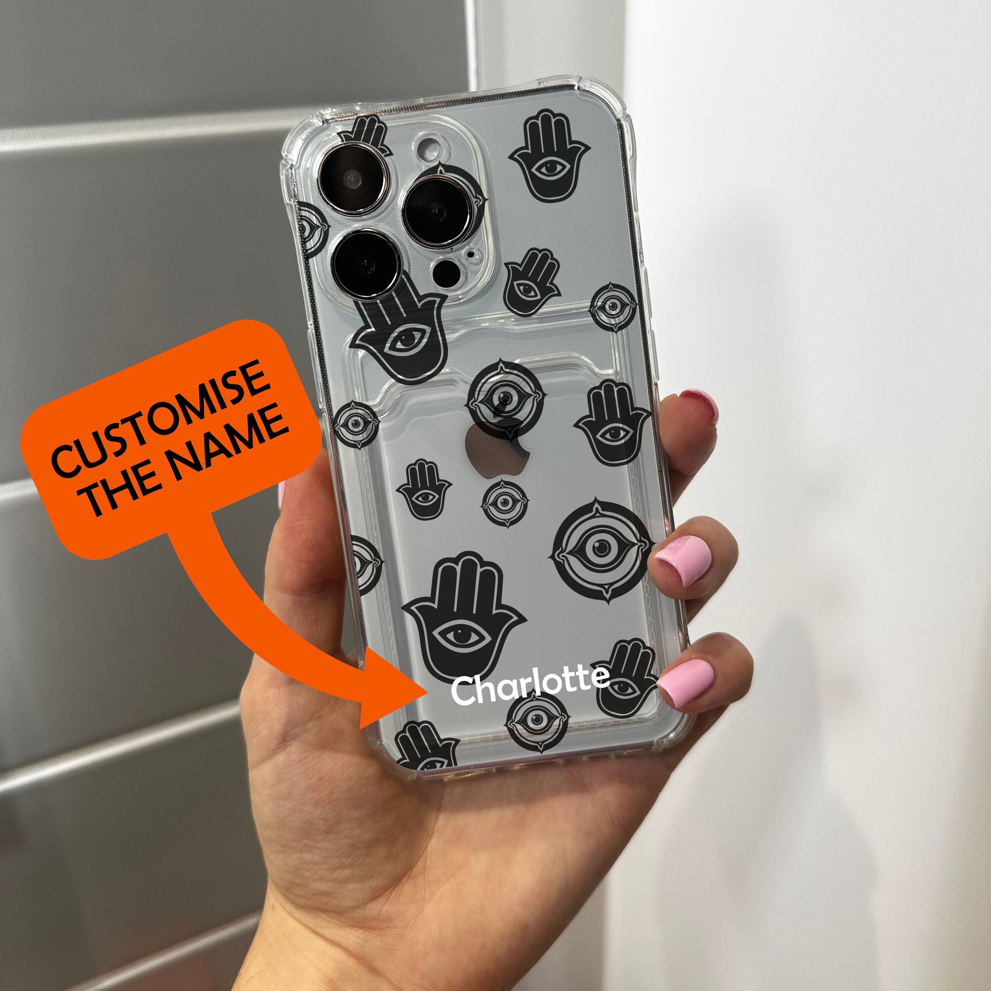 Clear Cute Card Holder Phone Case for iPhone 15 14 13 12 11 11 Pro Max Mini 7 8 XR XS X Wallet Shockproof Phone Cover with Customised Name
