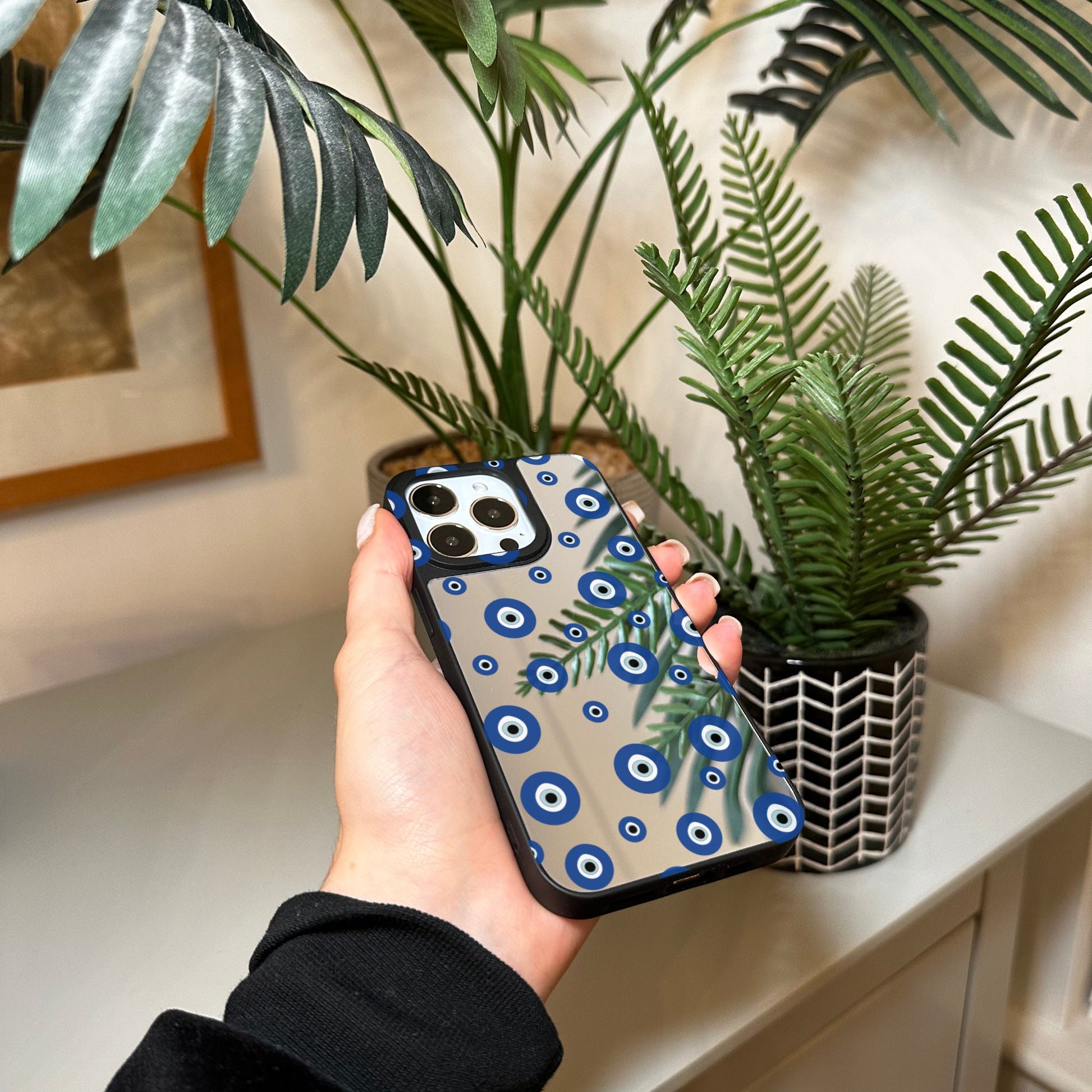 Evil Eye Mirror Phone Case for iPhone 15 14 13 12 11 11 Pro Max Mini 7 8 XR XS X Shockproof Phone Cover for Make Up with Customised Name