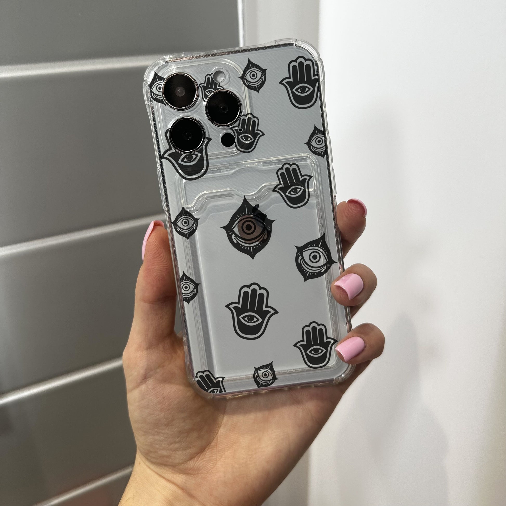 Evil Eye Protection Card Holder Phone Case for iPhone 17 15 15 14 13 12 11 11 Pro Max Mini 7 8 XR XS X Shockproof Phone Cover Custom Name