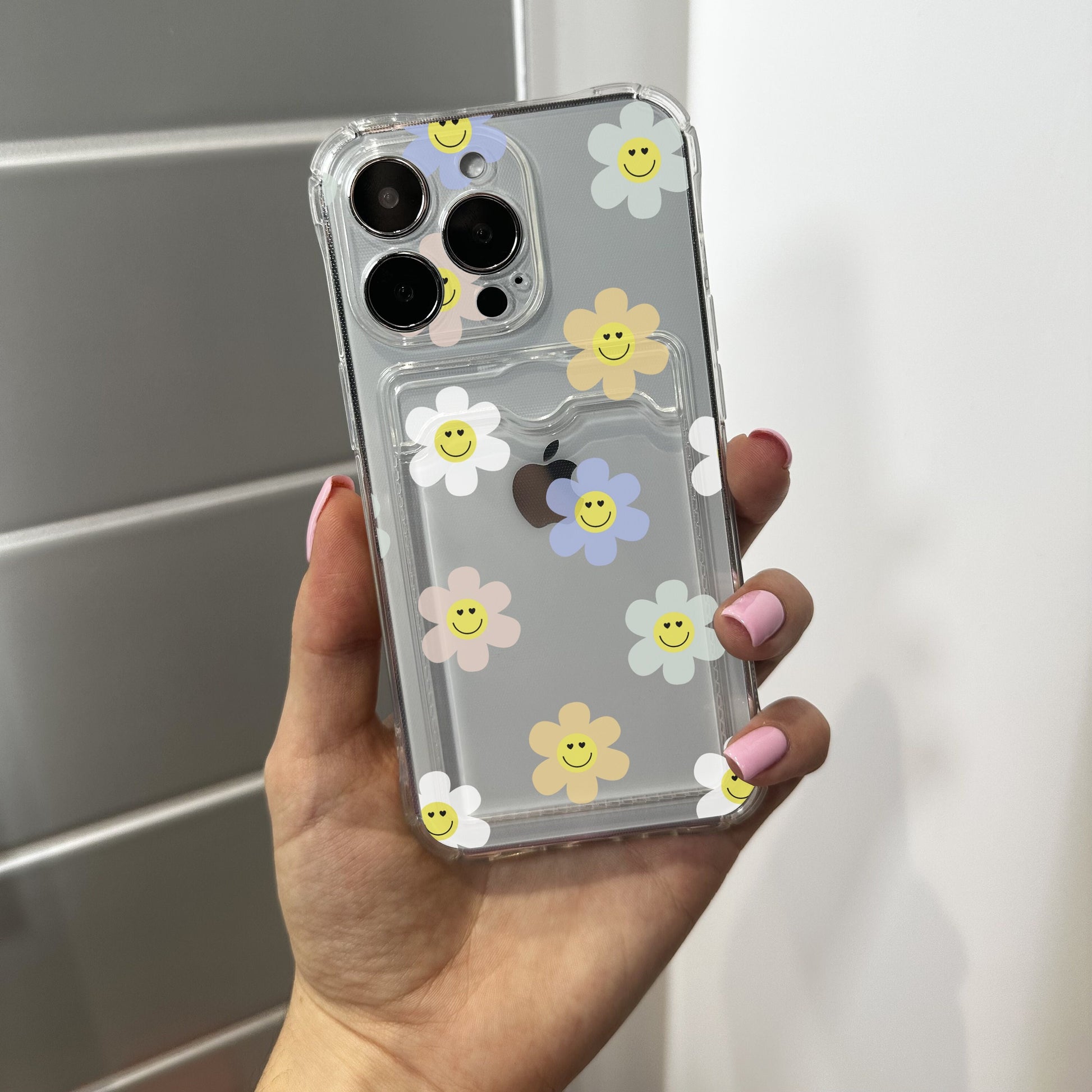 Floral Cute Clear Card Holder Phone Case for iPhone 17 16 15 14 13 12 11 11 Pro Max Mini 7 8 XR XS X Shockproof Phone Cover Customised Name