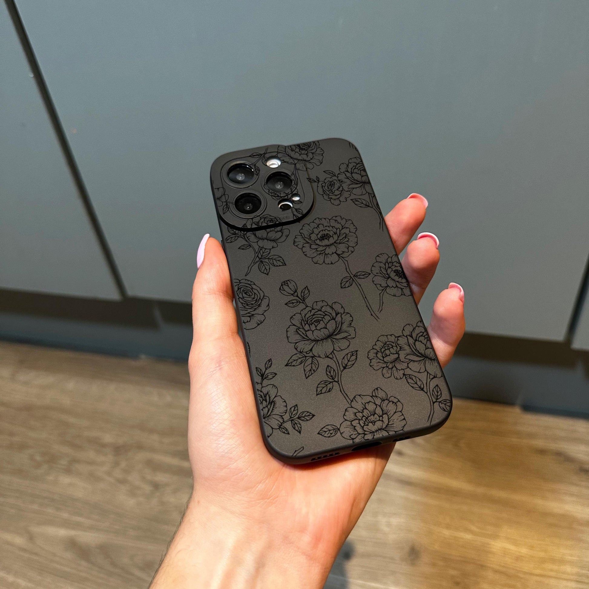Floral Roses Line Art Black Phone Case for iPhone 17 16 15 14 13 12 11 11 Pro Max Mini 7 8 XR XS X Shockproof Phone Cover with Custom Name