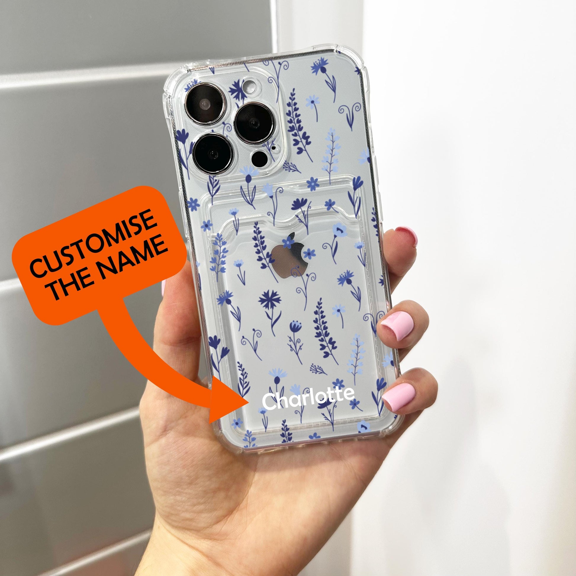 Navy Blue Wild Flower Card Holder Phone Case for iPhone 17 16 15 14 13 12 11 11 Pro Max Mini 7 8 XR X Wallet Shockproof Phone Cover Custom
