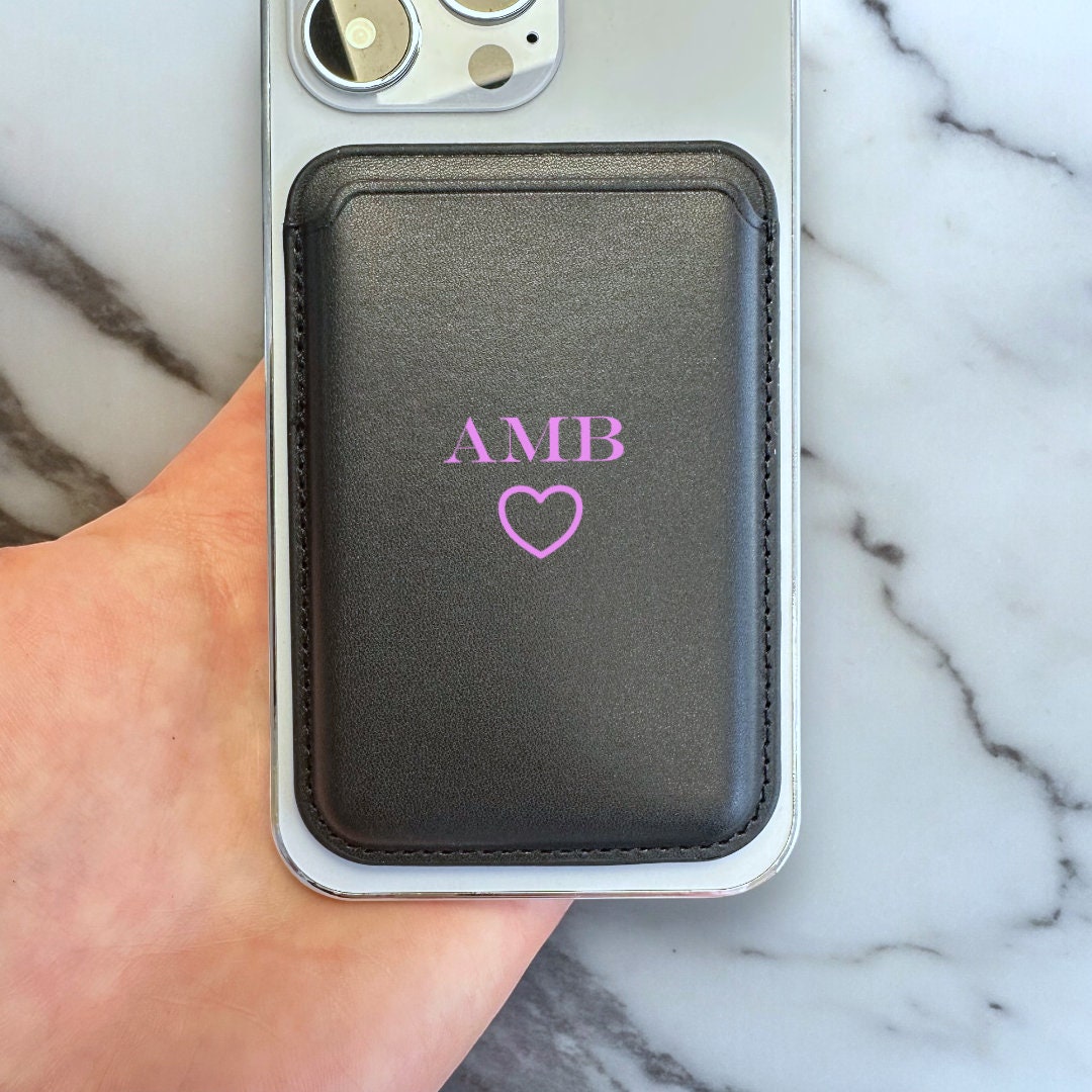 Personalised Monogram MagSafe Wallet with Heart Vegan Leather MagSafe Wallet for iPhone 15 14 13 12 Magnetic Card Holder Custom Initials
