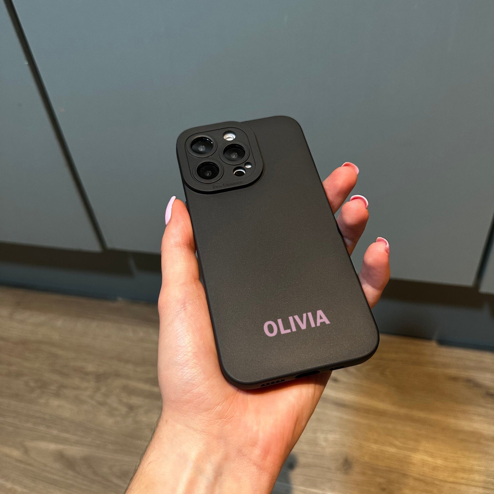Personalised Name Black Phone Case with Pink Modern Name for iPhone 15 14 13 12 11 11 Pro Max Mini 7 8 XR XS X Shockproof Cover Customised