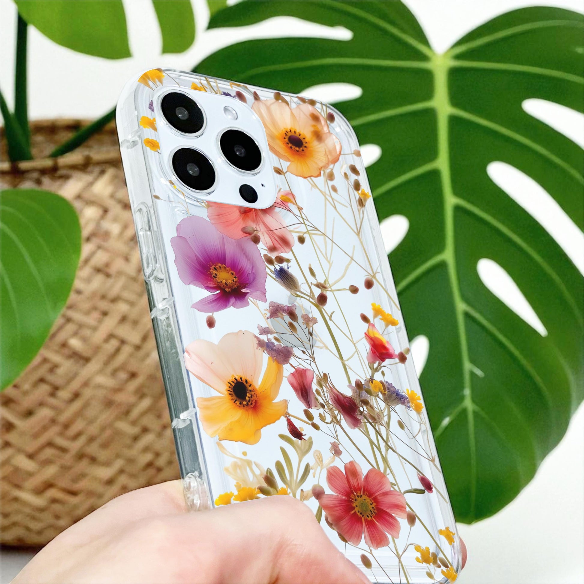 Pressed Flower Print Clear Phone Case for iPhone 17 16 15 14 13 12 11 11 Pro Max Mini 7 8 XR X Shockproof Silicone Phone Cover Custom Name