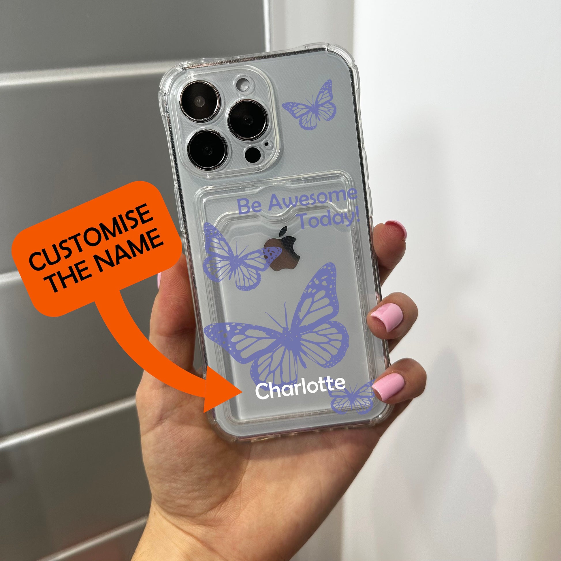 Purple Butterfly Positivity Personalised Card Holder Phone Case for iPhone 15 14 13 12 11 11 Pro Max Mini 7 8 XR XS X Shockproof Phone Cover