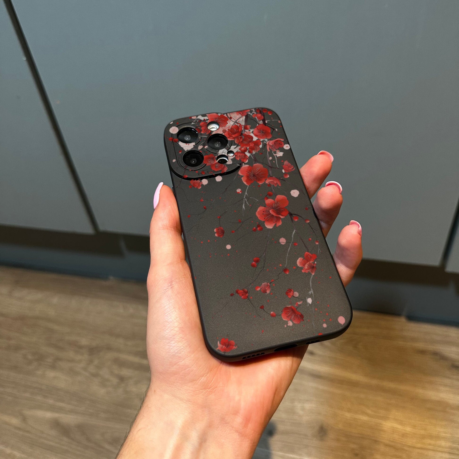 Red Flowering Tree Floral Phone Case for iPhone 17 16 15 14 13 12 11 11 Pro Max Mini 7 8 XR XS X Shockproof Phone Cover with Customised Name