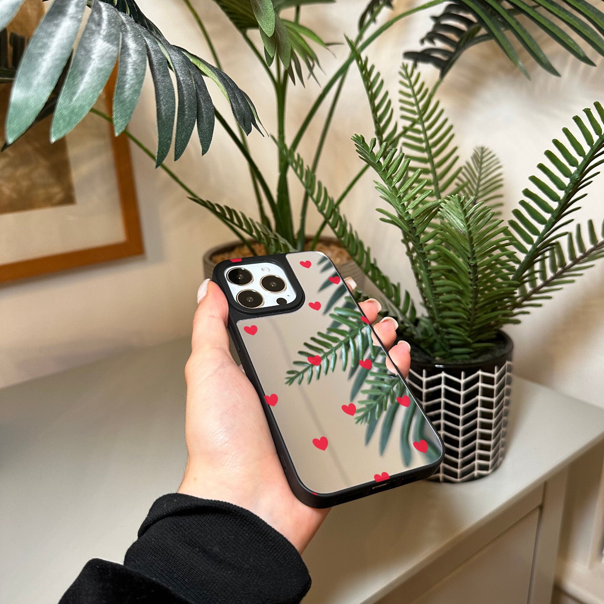 Red Heart Mirror Phone Case for iPhone 15 14 13 12 11 11 Pro Max Mini 7 8 XR XS X Shockproof Phone Cover for Make Up with Customised Name