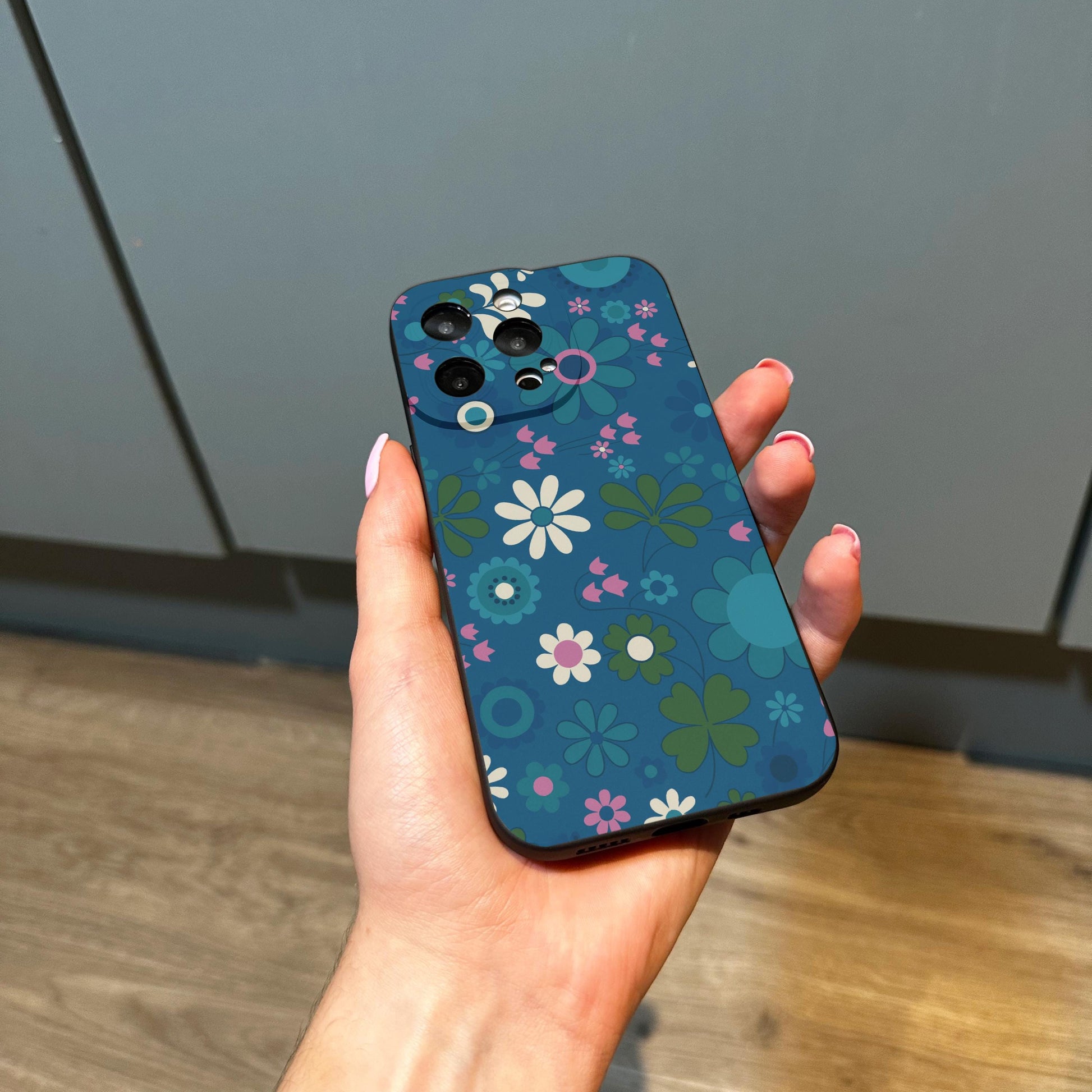 Retro Funky Blue Teal Phone Case for iPhone 16 15 14 13 12 11 11 Pro Max Mini 7 8 XR XS X Shockproof Phone Cover Custom Name