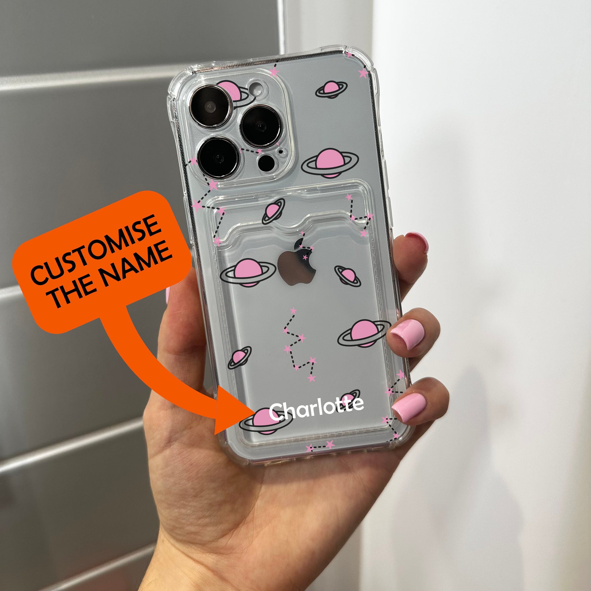 Space Star Card Holder Phone Case for iPhone 15 14 13 12 11 11 Pro Max Mini 7 8 XR XS X Wallet Shockproof Phone Cover with Customised Name