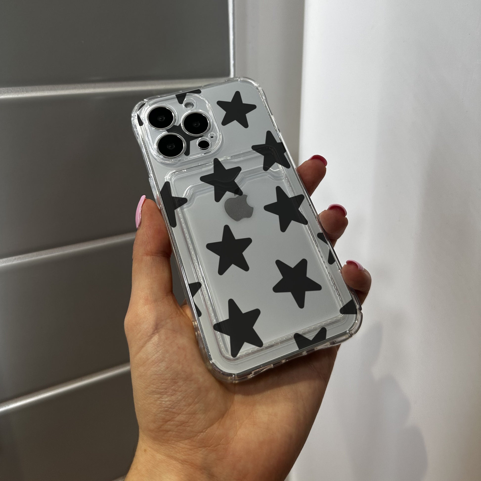 Star Clear Card Holder Phone Case for iPhone 17 16 15 14 13 12 11 11 Pro Max Mini 7 8 XR XS X Wallet Shockproof Phone Cover Customised Name