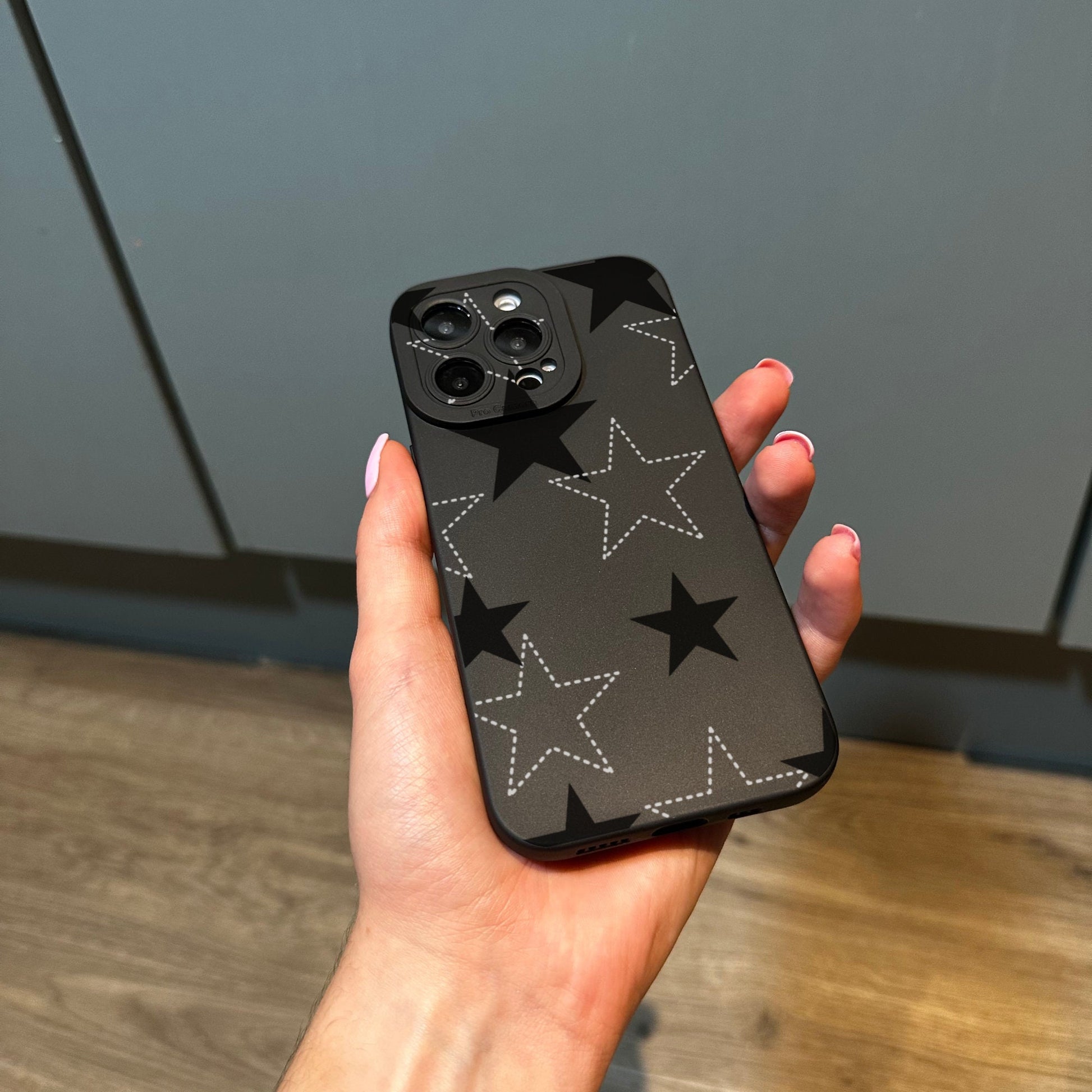 Star Pattern Black Phone Case for iPhone 15 14 13 12 11 11 Pro Max Mini 7 8 XR XS X Shockproof Phone Cover with Customised Name
